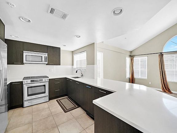 Stunning third level Penthouse with Soaring vaulted ceilings in Huntington Beach's gated Seaporte featuring two spacious bedrooms, two full bathrooms, inside laundry and a view balcony. Light and bright open floor plan! Upgrades include plush carpet, neutral tile, designer paint, recessed lighting, romantic fireplace, mirrored closet doors, professionally organized closets, newer dual pane windows, and MORE! Pristine remodeled Kitchen with quartz countertops and backsplash, stainless steel appliances, single basin sink with modern faucet and ample cabinet space! Primary suite with cathedral ceilings and slider leading to private view balcony! Fabulous community with elevator, association pool, spa, BBQ, club house and fitness center! (water, trash and basic cable/internet included) Walking distance to beach, dining, shopping and entertainment!