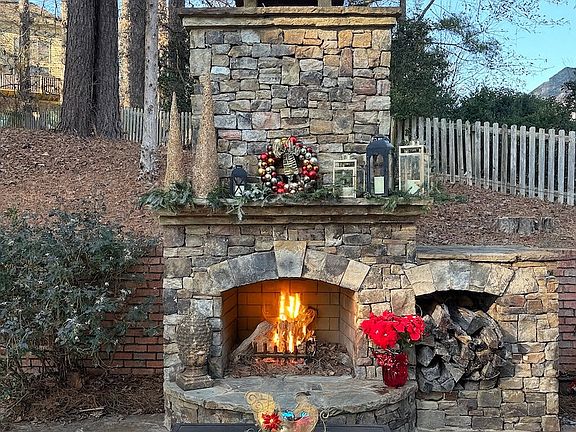 Stunning outdoor stone fireplaceHalf bathBright open layoutPrivate fenced backyard oasisLarge dining roomSide-entry two car garageWalk-in pantry