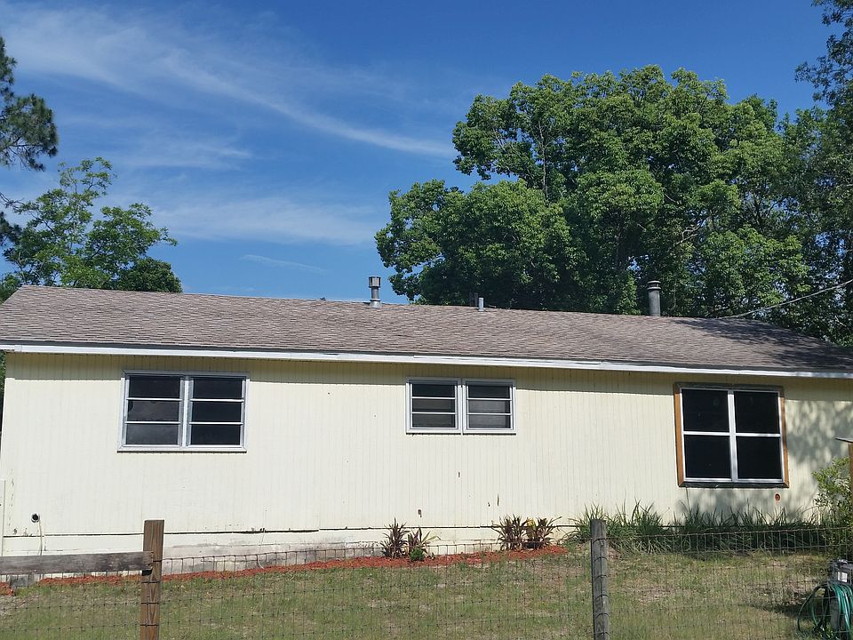 Perfect hunting retreat within Ocala Forest campground. Spacious kitchen with lots of cabinetry for storage and counter space for cooking. Family room opens to the back patio. Fully fenced yard and large parking pad for trucks and RV. Newer windows.