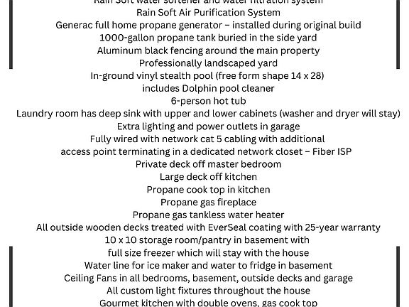 • Included: Dishwasher, Dryer, Freezer, Microwave, Refrigerator, Washer, Double Oven, Electric Oven, Cooktop
