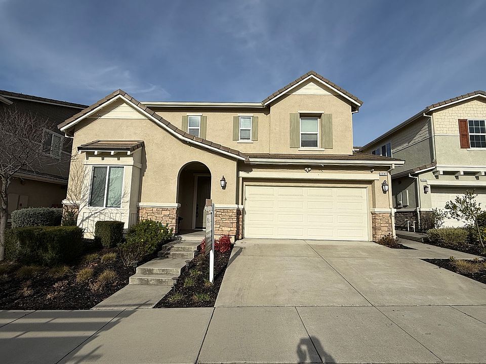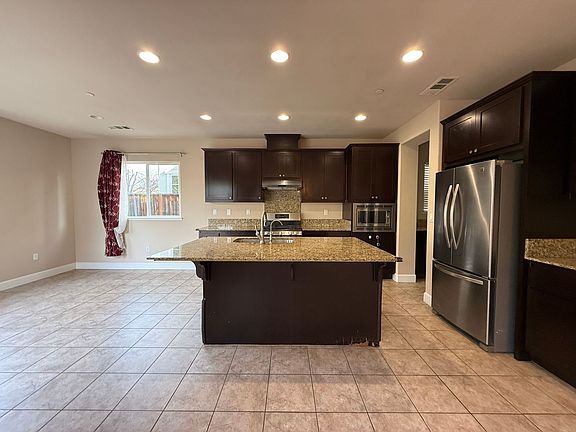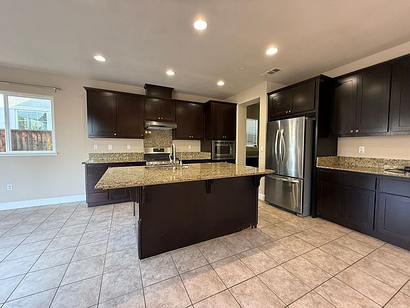 Delightful single-family residence nestled in Jordan Ranch neighborhood of Dublin. This spacious home offers 4 bedrooms and 3 bathrooms with one bedroom and full bath located on the ground floor. Built in 2012, this home boasts contemporary architecture with luxury vinyl plank flooring throughout, recessed lighting, central A/C and heat for year round comfort. The open floor plan seamlessly connects the living, dining, and kitchen areas, creating an inviting atmosphere for gatherings and daily life. Gourmet eat-in kitchen is equipped with stainless steel appliances, ample granite counter space, tile flooring, butler's and walk-in pantry, the kitchen is a chef's delight. Four generously sized bedrooms offer privacy and comfort, with the master suite featuring an en-suite bathroom with dual vanities, sunken tub, walk-in shower, water closet, and large walk-in closet. A two-car attached garage provides convenient parking and additional storage space. The private backyard consist of hardscape and artificial turf offering expansive space while being low maintenance. Situated on a 4,552 sq ft lot in the desirable Jordan Ranch subdivision, this home is part of a vibrant community. Residents enjoy proximity to top-rated schools, parks, shopping centers, and dining options. Easy access to freeway and close by Dublin BART station. The neighborhood offers a blend of suburban tranquility and urban convenience, making it ideal for families and professionals alike. 1-year lease min. No pets preferred but will be considered Refrigerator, washer and dryer included