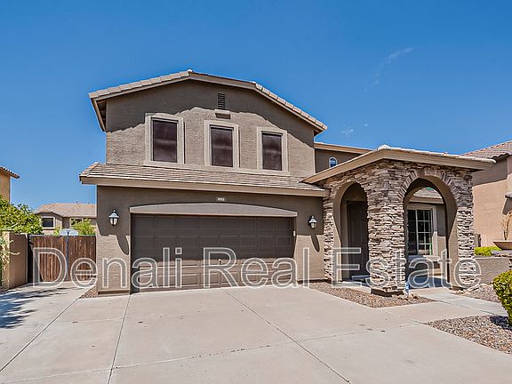 No Application Fees! Beautiful 5 bedroom, 3 bathroom Chandler home located in the desirable Sun Groves community. Spacious layout with a large front living room, separate family room, formal dining area, and a large upstairs loft. The upgraded kitchen includes granite countertops and backsplash, large island with breakfast bar, pantry, crown molded cabinets, stainless steel appliances, and a dining nook. One full bedroom and bathroom are conveniently located on the first floor. The primary suite features a walk in closet, double sink vanity, garden tub, and separate shower. A large laundry room includes a washing machine and dryer. The three car tandem garage provides excellent parking and storage. Enjoy the Arizona room and landscaped backyard with a private putting green, perfect for relaxing or entertaining.