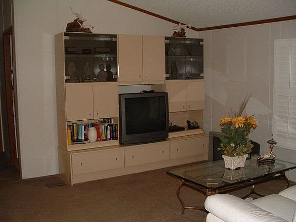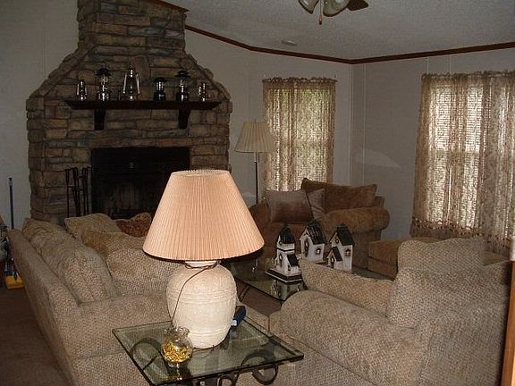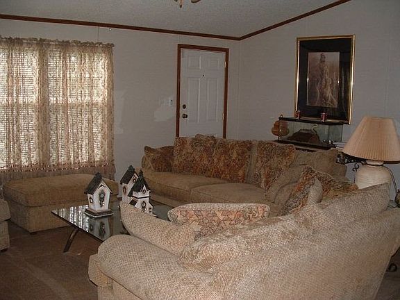 This very private manufactured home has block underpinning and sits on 3.48 acres. Home features an amazing floor plan with a great room that has a large wood burning fireplace. The Kitchen has a nice island with sink and extra counter space. Master BR has 2 separate closets and large master bath with garden tub, shower, double vanity and extra storage cabinets. Home also has a Den area for all your entertainment needs. New larger deck built in 2007 and also has a 3 room storage building. Property is located at the end of the road with complete privacy from any other homes. A must see property.