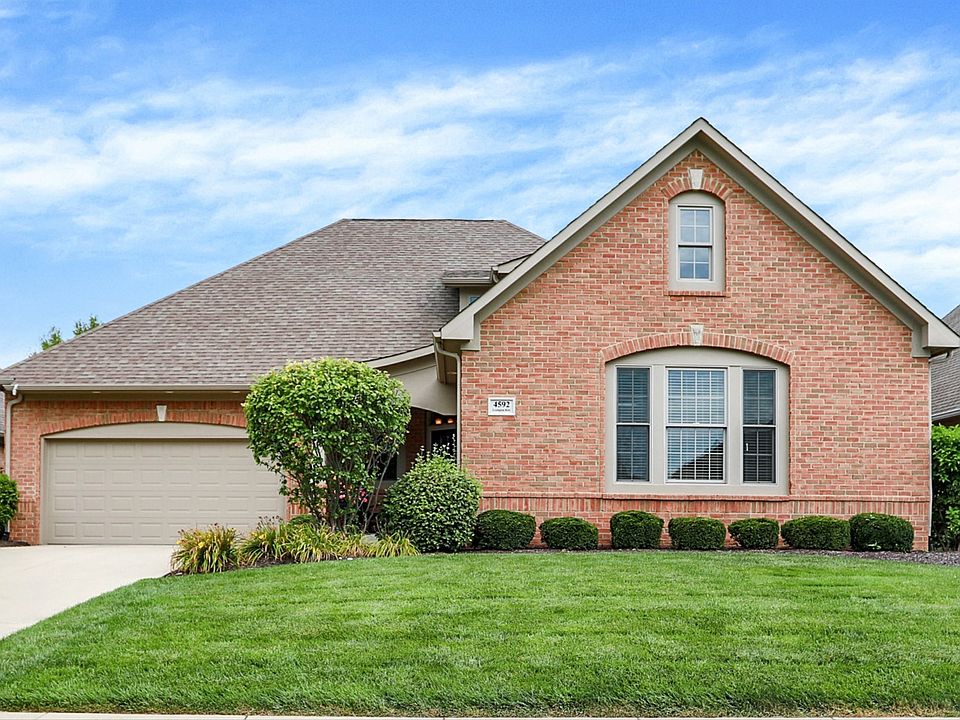 This one is an absolute stunner! Beautiful hardwood flooring throughout the main level and tray ceiling entry detail of this Center Grove ranch with a full, finished basement make this a beauty as soon as you walk through the door. The custom details throughout this home that set it above many others in the area include arched doorways, 11 foot ceilings, crown molding, wainscoting, solid core doors, and so much more. You will love the open floor plan and the views of hole number two on Hickory Stick Golf Course. Primary suite features tray ceilings, a tall double vanity with granite tops, large soaking tub, custom tile shower, and a large closet that leads to the laundry room. The outdoor space with a spacious screened porch and the Trex deck are added features that set this apart. The large recreational areas in the basement allow for plenty of room for everything you need. Other features of the fully finished basement include: two ample bedrooms that share a Jack and Jill bathroom, a wet bar with custom cabinetry and tile floors, and a large storage area with a battery backup sump, a radon system already installed, and an HVAC system that is regularly maintained. This home also features a two car garage and an additional one car garage, both with epoxy flooring. As part of the Hickory Stick Crossing community, you have access to the community pool, clubhouse, and miles of sidewalks. There is also a full, 18 hole golf course with membership opportunities, and a restaurant that is open to the public. You don't want to miss this one!