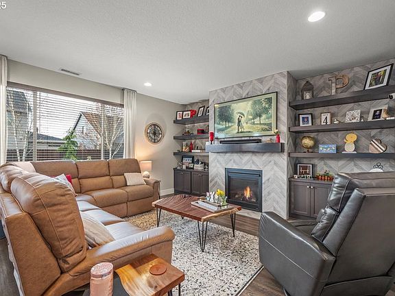 Located in the thriving city of Ridgefield, this stunning Kingston built home in the Canterbury Trails neighborhood offers a perfect blend of comfort and style. Featuring a great room-style floor plan, the main level boasts LVP flooring throughout, 9' ceilings, a custom entry wall, and built-ins surrounding a cozy, gas fireplace. Beautiful kitchen complete with upgraded energy efficient stainless steel appliances, a farm sink, quartz countertops, and a pantry. A dedicated office and main-floor laundry add convenience to everyday living. Upstairs, you'll find four generously sized bedrooms, including a spacious primary suite with a trayed ceiling, a walk-in closet with an organizer, and a primary bathroom featuring quartz countertops, double sinks, a soaking tub, electric blinds, upgraded tile flooring and shower. The professionally landscaped backyard is designed for relaxation and easy maintenance, with an oversized covered patio, low-maintenance turf, a water feature, and raised garden beds. Front yard sprinkler system and the HOA takes care of the mowing. Water Softener, A/C, Ceiling Fans throughout and more. The front exterior also includes permanent lighting for added safety and effortless holiday decorating. Conveniently located near shopping, dining, and amenities, this home offers practical living in one of Ridgefield’s top notch communities. Don’t miss this opportunity — schedule a showing today!