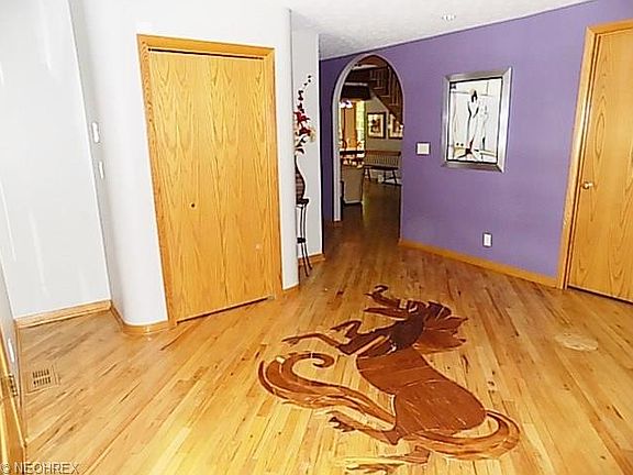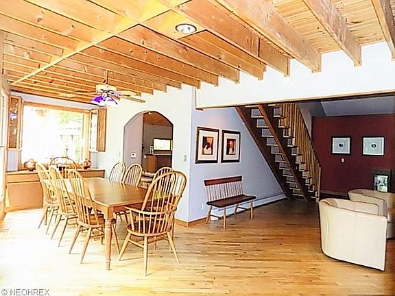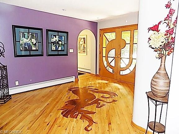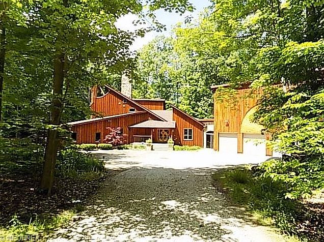 Stunning rustic, yet elegant, one of a kind secluded, contemporary home on 3+ wooded acres with pond in Richfield Township*From the moment you step inside the foyer you will find so many unique custom features*All floors hardwood or slate from old blackboards salvaged from Michigan school*Foyer has unicorn inlaid in wood*Entry to Grt Rm has moon etched in slate & a vaulted wood ceiling, woodburning FP with the sun etched in slate, & doors to side deck*LR has floor to ceiling real stone FP & open staircase*Gourmet kitchen with walnut Amish crafted cabinets, butcher block counters, SS appliances, one of a kind leaded glass fronts with unique inlaid commonly used bottles & condiment cans & slate floor with a dragonfly inlaid*Door to another deck*DR has built-in buffet*Walk-in pantry*Laundry with built in ironing board & cabinets*Double offices with Amish built cherry desks & bookcases*Exercise/pet room w/rubber floor & puppy bath*Walk-in cedar closet*1st floor guest/in-law suite with bath*newly remodeled half bath*Upstairs you will find a bedroom w/ladder to sleeping loft & porthole window*Master suite w/window wall, gas log FP with granite surround, slate floor with spider web design w/fly, closets & master bath*Spiral staircase from master to solarium with inlaid solar system to scale & nails to depict the stars, wall of windows, gas log FP, built-in bookcases under crescent windows & half bath*Breezeway between the house & 4 car heated garage with storage loft above*UNIQUE!!