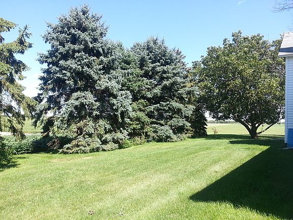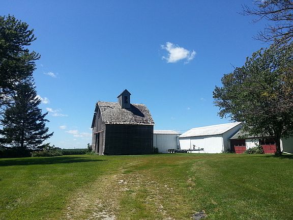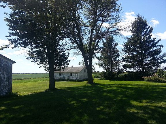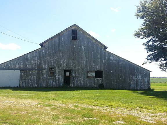 approx. 3 acres with 2 barns, 3 grain bins, corn crib. shed, 2 car detached garage, work shop. 2-3 bedroom house needs some tlc. nice location with mature trees. exact acreage Will be determined by survey