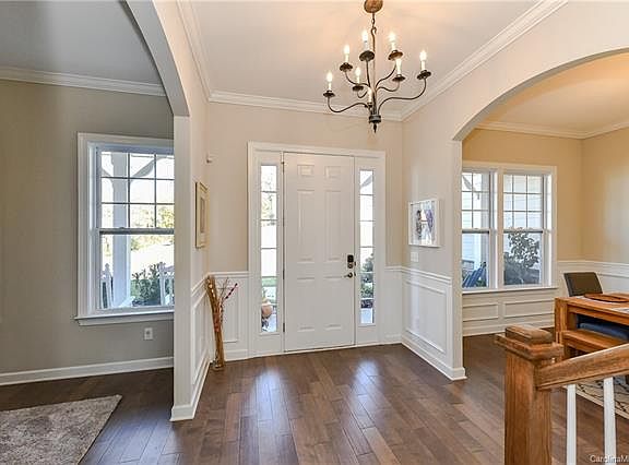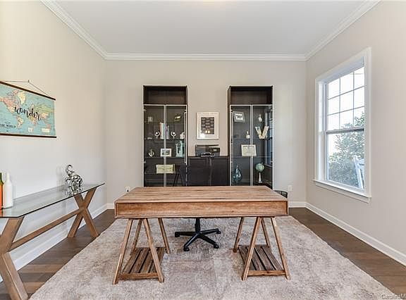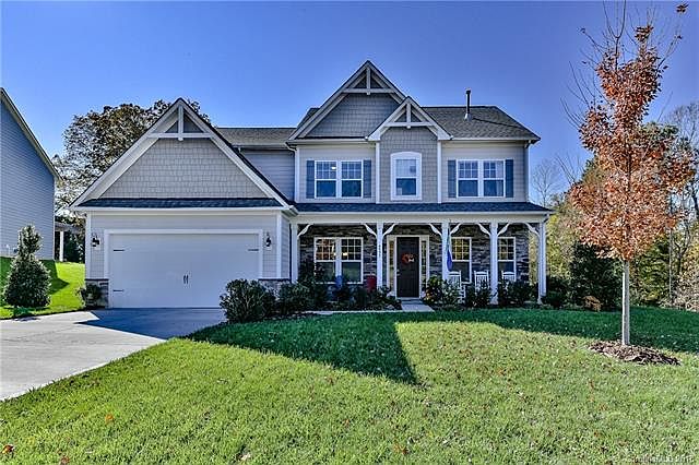 Immaculate almost new home on one of the largest lots in the community! This 3-year-old house is loaded with custom features and millwork. Boasts over 3,700 sqft of a desirable open floorplan including a dining room, office, guest suite and 10ft ceilings on the main level. Upgraded chef's kitchen with double ovens, gas cooktop, expansive center island and a breakfast area. The large master suite has an exercise area, custom walk-in closet and bath with an oversized shower and a tub. Three additional bedrooms and a media room on the upper level. Entertain on the huge 10x40 partially covered patio, enjoy the beautiful custom landscaping and fenced yard that backs to mature trees and unbuildable adjacent lot. Equipped with solar panels for energy efficiency. Close to shopping, dining and easy highway access for Charlotte commuters. Shows like a model home!