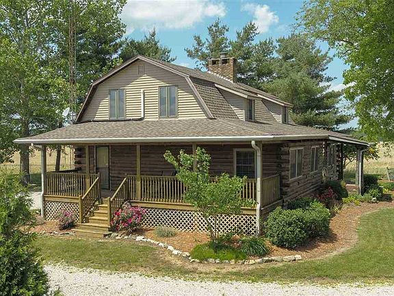 This wonderful Log home sits on 1.69 Acres just 5 miles West of Vincennes and less than 30 minutes from Toyota. When stepping out the back door you will find yourself on an oversized covered wraparound porch. You will love the 36 x 40 insulated pole barn with an attached dog kennel and fenced back yard. The main level of home offers a warm and inviting kitchen / dining room as well as an extra large living room with a fireplace. There is also a den on the main floor that you could convert over to a guest bedroom. The windows all across the front of the home provide you with a beautiful view across the country side. The very large bathroom on the main level has been turned into a 1/2 bath but can very easily be converted back to a full bath as the plumbing is located under the flooring. Upstairs you will find 3 or 4 bedrooms. Home has solid six panel doors as well as a full basement that includes a Water proofing system, a new full bath, fireplace, rec room, and workshop. Family is Motivated to receive a Buyer. Many improvements have been completed since it originally listed. Mineral Rights are included.