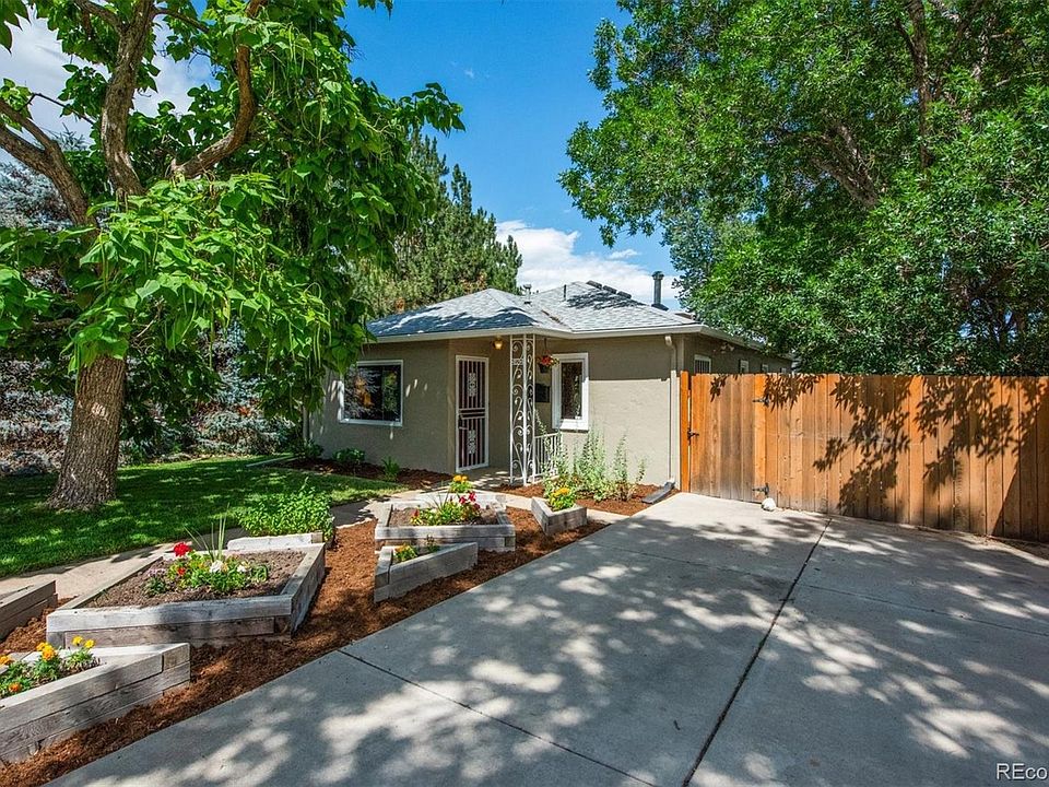 Nestled amongst mature landscaping in the heart of the desirable Sunnyside/North Highlands neighborhood, this single-story ranch is a must see! This unique home features a newly renovated kitchen with quartz countertops and all brand new stainless steel appliances, a spacious main bedroom with a vaulted ceiling, large closets, and an attached bath with a double sinks, and a comfortable open concept floorplan. Two of the three bedrooms walk out into the large, fully fenced backyard complete with a natural gas grill hookup and a large tree covered patio area perfect for dining and entertaining. Plenty of storage space in your oversized two car garage complete with an attic. Easy access to I-70 and I-25, a short bike ride downtown, and conveniently walkable to lots of great dining, breweries, and parks. You don't want to miss this rare find in this incredibly desirable area!