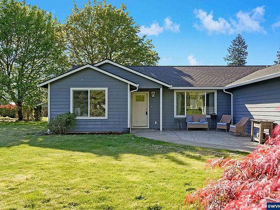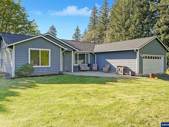 Single level house built in 2018 with open floor plan. Awesome two bay 30 x 36 shop has additional 1 bed, 1 bath apartment that is not included in square footage. Great room has vaulted ceilings. Spacious primary bedroom has walk in closet. Over half acre lot is adjacent to public acreage with old growth timber that creates a park like feeling. LVP floors & $3500 carpet allowance offered. Nicely finished hobby shed.