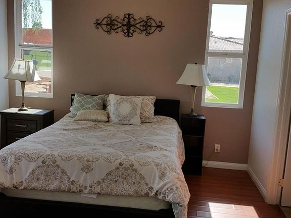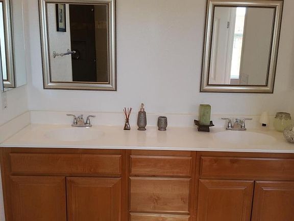 2 bedroom, 2 bath single family home, granite counters thoughout, nice view of the mountains out the back patio. Also has a front patio for enjoying our summer evenings. kitchen has huge pantry a favorite with all the cooks. lots of cabinets and storage space. Master bedroom has walk in closet and master bath has large walk in shower with convenient bench. Gated community, night time security and community pool. Easy access to anywhere in the desert just off the I10.