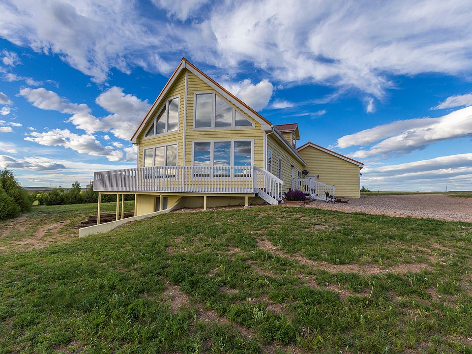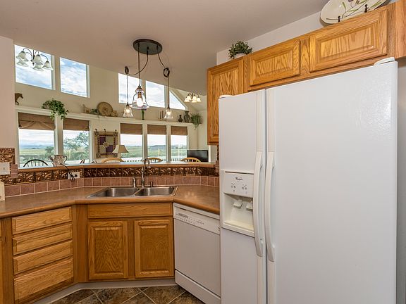 Horse Lovers, take note! 4800sf indoor sand arena with tack/feed room and 6 attached runs w auto-waterers, fenced and cross-fenced on 39+ acres. Home features a vaulted living room with floor-ceiling windows for stunning sunset views of the foothills. Remodeled master bath has heated ceramic floors, walk-in large onyx shower, soft close drawers and custom barn doors. Partially finished walkout basement w 3/4 bath and custom stone fireplace. Potential to subdivide per County.