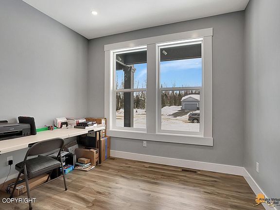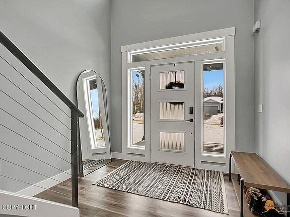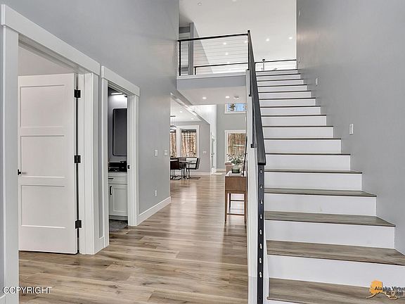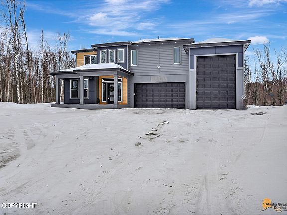 Presenting this stunning custom home in the desirable Wasilla-Fishhook area. This custom gem boasts an inviting layout with 18ft ceilings in the living room and entryway. Inside, this home features a beautiful built-in entertainment center, and a well-equipped kitchen including all appliances, quartz countertops, a pot filler, and much more.Enjoy vinyl flooring, a well-lit ambiance, and a spacious pantry containing butcher block and outlets. You'll notice a built-in mudroom next to the garage with a storage closet in the same vicinity. Appreciate the convenience of a laundry room near the bedrooms. The upgraded 3-car garage includes an RV/Boat bay, utility sink, and a 50 amp welder hookup. Step outside onto large trex decks to soak in partial mountain views. This meticulously designed home offers both luxury and practicality - make it yours! Buyer is able to personalize the exterior by selecting the type of rock finish that is to be installed surrounding the garage. Home has piping for wood stove installed, but not a wood stove.