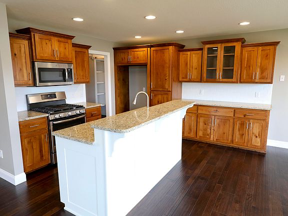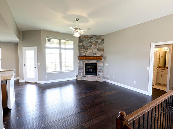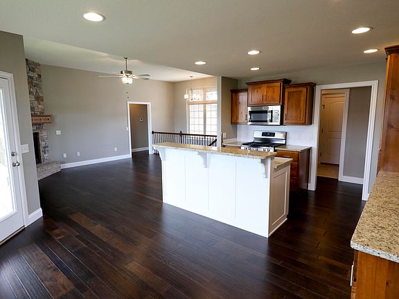 ..New in Vintage Hills! Walk out basement with appr 1492 SF on main level and finished basement..5 BR's,3 Baths,3 fireplaces (2 inside and 1 on back patio).Custom white cabinets in kitchen with dark beech wood island ,dual vanities in master bath with abundant closet .10 ft ceilings,white trim, 6 panel doors, 2 barn doors, pantry and barn doors in MBR as well!Custom tile shower with frameless glass pivot door accented with oil-rubbed-bronze fixtures .Range optional gas or electric availability,Engineered hardwoods in liv/entry/din/hallway.Granite through out and tile in baths and laundry.Carpet in the bedrooms. Low E windows, 95% efficient furnace with 16 seer AC. All bedrooms have USB powered outlets , sodded yards,irrigated,covered deck and John Deere Room!