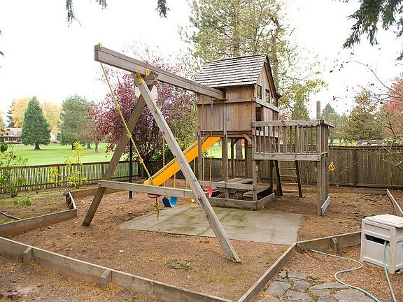 One of Rock Creek's best locations, on 1/2 acre golf course lot w/deep&private yard. Garden & wood sheds, raised beds, play structure, sprinklers, pond, full width paver patio, trellis. 4-car gar w/skylight&opnr, main floor bonus, big kit/fam rm, X-LG Bedrooms. Custom cherry cabs, slate & hdwd flooring, all-new carpeting, marble baths, vinyl windows w/plantation shutters, alarm, slate/marble FP's, 2 furnaces/AC's.