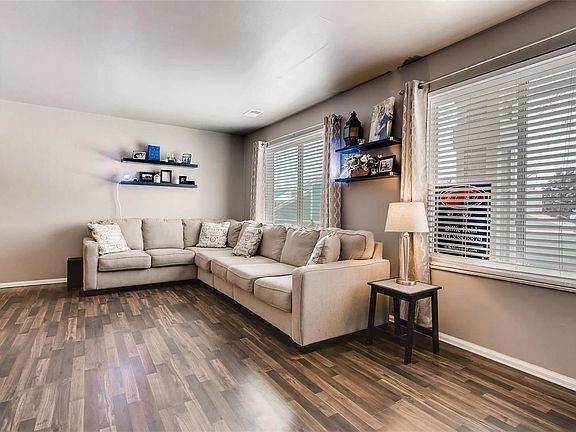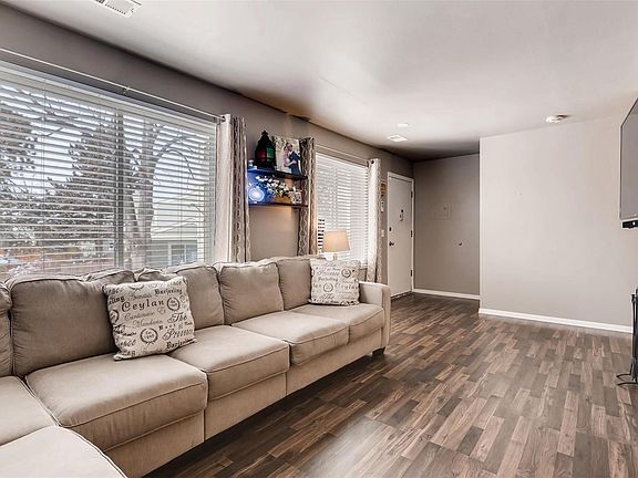 Quick possession, move-in ready, nicely updated townhome in the highly desirable Cherry Creek School District. Main level features a spacious family room with a fireplace, 1/2 bath and updated kitchen with large dining area. Maintenance-free floors on the main level. Two huge bedrooms upstairs with plenty of closet space and a full bath. Enjoy mountain views from the upstairs bedrooms. Park in the attached carport and walk directly into your home! Carport has outside closet for additional storage. Enjoy the outdoors in privacy in the large fenced in patio area. Walking distance to community pool. All appliances stay including the refrigerator, washer and dryer!