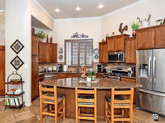 Gorgeous 3 bedroom, 2.5 bath La Quinta for sale. Open floor plan features large living room with gas fireplace, built-in entertainment center, window shutters and elevated ceilings. Kitchen has Granite counter tops, large Island, pull out cabinet shelves with a view of the inviting courtyard. Master bath with large Granite vanity, double sinks, walk-in shower and a custom walk-in bathtub. Master bedroom and dining room have sliding glass doors to patio areas. 3 car garage with storage room.