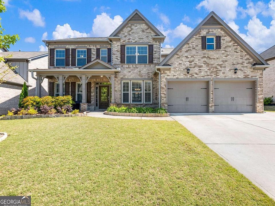 Introducing 4595 Woodland Bank Blvd, a 5 BR, 4 BA, 3 car garage home in the sought-after Buford City school system within the desirable Whispering Creeks Subdivision. This beautiful home is nestled by a cul-de-sac and features a generously sized floor plan with 3-sides brick on a manicured, landscaped level lot. It boasts an open foyer with decorative trim, adjoined by a formal dining room with a coffered ceiling and a flexible living space. The home is filled with natural lighting from ample windows and has LVP floors throughout the common areas on the main. The family room is spacious with built-ins and a fireplace that opens to a kitchen showcasing walnut-stained cabinets with soft-close drawers, granite countertops, an SS double wall oven, microwave vented to the exterior, and a gas cooktop! The kitchen has an oversized island with a single-basin sink, dishwasher, and pendant lighting. A spacious breakfast area flows into the kitchen, sharing a walk-in pantry and a butler's pantry. A main-level bedroom with a full bathroom adds convenience, while upstairs features a sizeable primary suite with a large walk-in closet, a junior suite, and two bedrooms sharing a full bath. Bedrooms are accompanied by a flex room that offers additional comfort to the living space. The laundry is conveniently located upstairs. The level backyard is secured by a privacy fence and has a separate grilling station and a large patio, partially covered by a vaulted roof with a ceiling fan. Come tour this home to experience a space well-balanced with indoor and outdoor living! Whispering Creeks is convenient to 985/85 and within walking distance to Buford Community Center, Town Park, Theatre, and Buford Village, where shopping, dining, and entertainment.