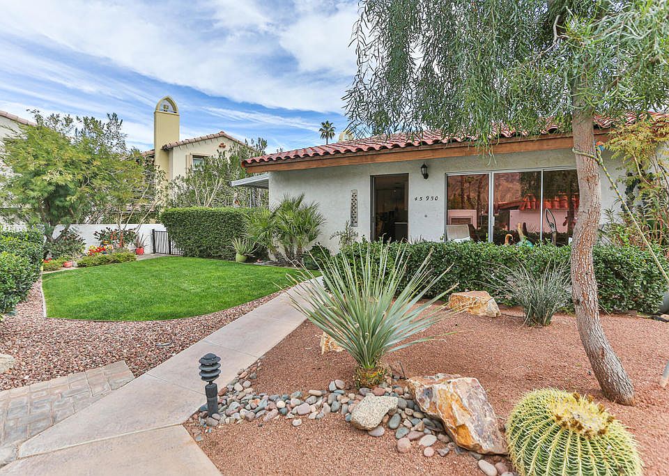 Experience the unbeatable charm and style of this jewel, in South Palm Desert. This exceptional 2-bedroom/2-bathroom end-unit one-story condo is a must-see! Revel in the magnificent mountain views from your living room and the privacy of your wrap-around patio. Set in the welcoming Sun & Stars community, you're conveniently within walking distance of all El Paseo has to offer. As soon as you open the door, you'll be welcomed by a spacious, naturally lit interior that breathes tranquility. The open layout intuitively flows, connecting the living, dining, and kitchen areas and highlighting the vast sense of space. Excellence is in the details, with elegant tiled flooring draping this condo in sophistication from wall to wall. The recently remodeled kitchen is a dream for any cooking enthusiast, boasting quartz countertops and sleek stainless steel appliances that blend style and functionality effortlessly. The crown feature of this property is its supremely private wrap-around patio, a tranquil retreat that provides breathtaking mountain views. The comfortable bedrooms are your serene havens for rest, each with extensive closet space. Adding a touch of exclusivity, each room offers access through a sliding door to your private patio, bringing a piece of the beautiful outdoors within your reach, combined with tastefully updated bathrooms. Enjoy the large community pool & just steps away from shopping, dining, entertainment & outdoor activities. Schedule a private showing today!