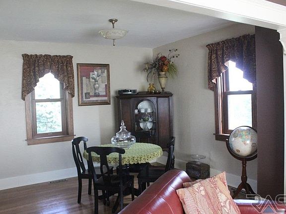 Modern conveniences meet old fashioned charm with this 4 bed, 1 3/4 bath home. Being on a new hard surface road and a quick 14 miles from Sioux Falls, the acreage offers plenty of curb appeal and unparalleled solitude/privacy. Mature trees surround the property yet still allow for spacious views of sunsets and sunrises. The poured basement, electrical, plumbing, HVAC, septic and garage are only 6 years old. The custom kitchen with soapstone counter tops, commercial sink and cork flooring is 2 years old. Original hardwood floors grace the living room, dining room and the entire second floor. The second floor also boasts barrel-rolled ceilings in every room. Closets are ample for a home of this age. 2 egress windows in the partially finished basement offer plenty of opportunity for expansion which could include another bedroom, family room or teen hang-out space. Many unique features await you at every turn as you move about this acreage.