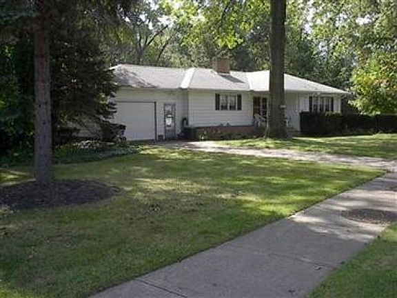 If you love one floor living this wonderful ranch style home with 2 bedrooms, living room featuring a woodburning fireplace, dining room with a door to an outside porchj/deck. Newer kitchen, updated full bath. Roof, garage door, flooring/carpet in 08, freshly painted throughout. Attached 1.5 car garage w/opener. Featuring a finished rec room with a woodburning fireplace insert. bath, laundry room, pantry and plenty of closet space. The sliding glass door which leads to an outside patio, where you can relax This scenic .54 acre property has a creek running through it. Close to metro parks, shopping.