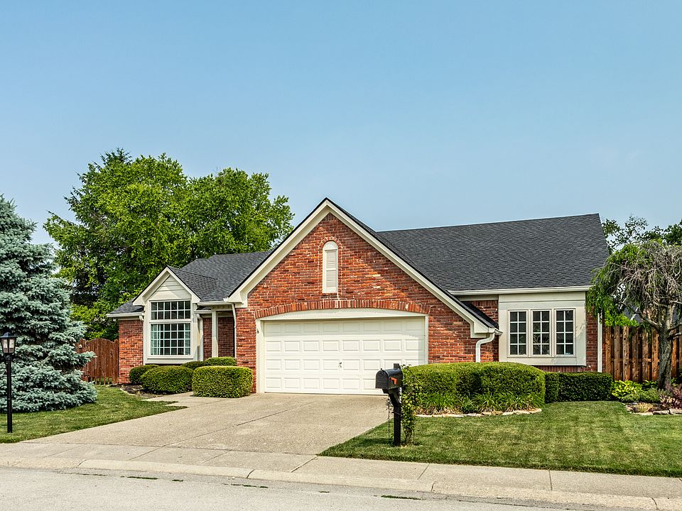Beautifully remodeled ranch-style home nestled in a private, treed setting in desirable Brookshire Village. Bright, open and freshly painted interior with new Pergo flooring throughout and an abundance of windows to let the outdoors in! Remodeled kitchen boasts new cabinetry, new quartz counters, new subway tile backsplash, and new refrigerator, oven, and microwave. A cozy fireplace warms the adjoining fam room with screened porch access. The spacious living room features sliding doors to the patio. Relax and unwind in the vaulted primary suite with wall of built-ins, walk-in closet, and bath with new dual sink quartz-top vanity, new mirrors and lighting. Large 2nd bedroom ideal for guests. Brand new HVAC and Nest thermostat.