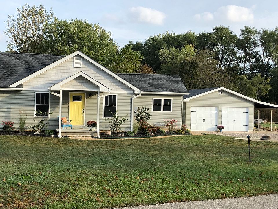 Early 1900's built farmhouse has been beautifully remodeled inside and out. Everything is new from roof to septic. A huge mud room, accented w reclaimed ship lap wood opens into the kitchen w extra cabinet space. The Kitchen is very open with vaulted ceiling and the family and living rooms adjoining. New stainless steel appliances and an over-sized island that sits five is ready to entertain the family and friends. There are granite countertops throughout the home. It is a split floor plan and the master bathroom has beautiful, refinished original hardwood floors, double marble vanity, and subway tiled walk-in shower. All bedrooms have large walk-in closets. A laundry area is in the hallway. Hall bathroom has comfort height, double vanity and bathtub. Utilities have been brought up out of basement and AC and furnace are both new. Home sits on approx. 1.5 acres with mature trees. There are locust, walnut, and persimmon trees throughout property. A beautiful stone patio nestles between the home and garage with an inviting fire-pit. A sliding glass door takes you from family room to the back patio and into the quiet, peaceful backyard. The garage is a 2 car, but has open 3rd bay. There is lots and lots of room for storage in this house. Basement is not finished but very dry. Home is Vectren natural gas and Brown county water. For those that want to have extra water for that garden or yard, there is an old hand dug well that can be used for irrigation. Great school system of Indian Creek Is only a short drive away.