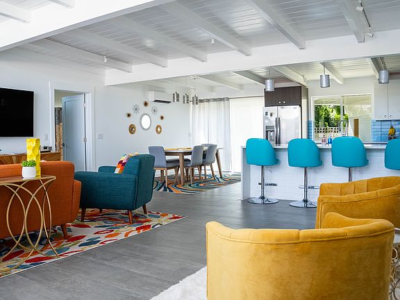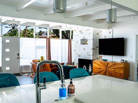 Immerse yourself in the comfort and style of this beautiful mid-century modern single-story house nestled in a wonderfully quiet and safe neighborhood. This lovingly maintained home, available from July 1st, awaits its new occupants, who will undoubtedly appreciate its blend of modern amenities and classic charm. Spanning a generous layout with two bedrooms and two bathrooms, this home provides the perfect backdrop for relaxation and entertainment. As you step inside, the inviting atmosphere is immediately apparent. The living room, a harmonious blend of modernity and warmth, features a plush sofa set against a stylish coffee table. The smart TV provides entertainment at your fingertips, perfect for cozy movie nights. Adjacent to the living area, a dedicated workspace with a desk ensures you can manage work or creative pursuits from home. Utilities & internet included, no smoking