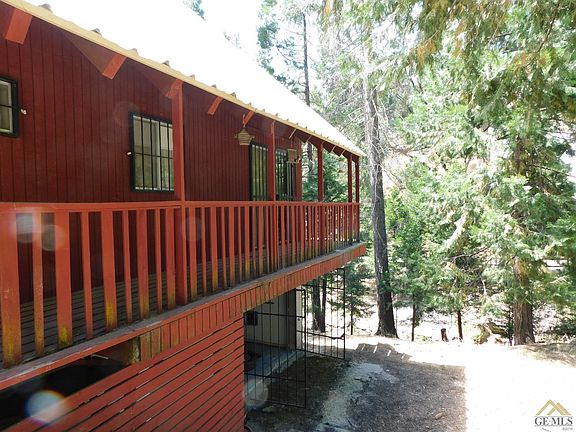 Cabin on just under 10 acres of forested land. Needs TLC with lots of potential. Private location borders Sequoia National Forest, small seasonal creek runs through the property. This is a great property--Cabin is 2-story, primary bedroom and bath downstairs, upstairs has a 1 bed and loft area, also room for a 2nd bath. Lots of windows, interior access to garage. Property on community well. Seller motivated.