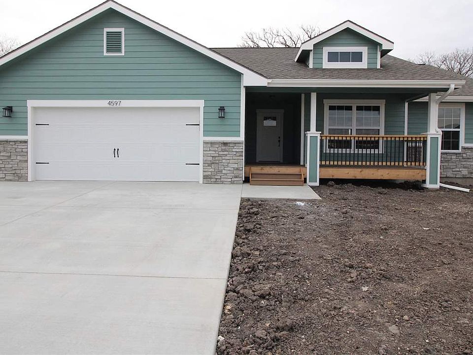 Great new construction in Pottawatomie County by Robinson Building Corp. This open floor plan ranch home backs up to a forrest of large oak trees that makes this a one of a kind property. A large front porch graces the front of this beautiful home to create that country feel in the suburbs. Three bedrooms and two baths on the main floor along with an open kitchen, dining and living room make up the main floor. A large family room with lots of storage make up the basement with still lots of room to ad two bedrooms and a bath later. With all high end finishes in beautiful natural colors, this home is a must see for any nature loving family. Park facilities are also available in this Elbo Creek Estates Subdivision. Come, enjoy the good life!