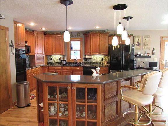 THIS IS THE ONE!!!! Waterfront Home with great Lake Views. Outstanding Condition. MAIN LEVEL- Open Floor Plan. Lakeside Great Room Vaulted Ceiling-Window Wall. Kitchen with Eating Island encasing Jenn Air Rge. High Quality Cabinetry. Dining Area. Formal Dining Room. Amazing Wood Flooring. Half BA/Laundry Room. Lakeside Three Seasons Room. Large Deck with Pergola. Lakeside Master BDR SUITE-Tray Ceiling-Walkout to Deck, Two WIC - His & Hers. Large BA - Air Jet Tub, Corner Shower, Corner Double Vanity. Plus Built Ins. Open Oak Staircase to LOWER LEVEL: Lakeside Family Room w/sliders to Patio. Wet Bar Area. Two Lakeside BDRs w/WIC. Sleeping Area, Storage Room, Utility Room. Attached Three Car Garage-level paved drive, with offset for Golf Cart or Workshop. Beautiful Landscaping. LIFETIME SAVINGS WITH GEO THERMAL HEAT & A.C. Move in Ready! Make the Owners move!!