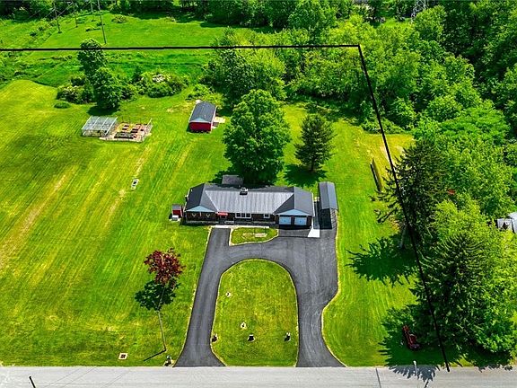 **METICULOUSLY Maintained RANCH W/2,000 Sq. Ft. Of Living Space Includes 3 Bdrms, 1 Ba & WALKOUT Finished Basement On 4.3 ACRES OF LAND!! *Attached 2 Car Garage + RV CARPORT + Detached Garage/Barn OUTBUILDING W/Garage Door & Electric!! HUGE Circular Asphalt Driveway For 10+ Car Parking! *Enclosed Garden Beds W/Rhubarb, Asparagus, Raspberries & More. Herb Garden W/Lavender, Chamomile, Lettuce Near Home *Deck To Sit Outside By A Mature Tree W/Shade & Enjoy The Peaceful Setting! *No Neighbors Behind Or On One Side & Deer Can Be Seen In The Yard *MAJOR UPDATES INCLUDE: NEW SEPTIC & WELL '18-'19, Tilt In Wash VINYL WINDOWS & Basement Glass Block Windows, Brand New Extended KITCHEN & Bathrm '19, METAL ROOF On House & Shed + Shingle ROOF On Barn, New 5" GUTTERS W/Gutter guard, REFINISHED Hardwood Floors, Dual Tank Water Treatment System All In '20, Asphalt DRIVEWAY '21, Sump Pump '23, H20 Tank '24, Finished Basement '25, 33 Pine Trees Removed, New Craftsman Style GARAGE DOORS Plus Added A Whole House GENERATOR!! This Property Has So Many Updates You Can Feel Confident Moving Here! White Survey Markers Every 150 Ft./Property Lines *Little Bridge Side Yard By Tower *2 FIREPLACES! *Walk In To A Large Living Rm W/Triple Windows For Natural Light, Coat Closet, Wood Burning Fireplace W/Ash Cleanout Door, Feature Wall To Wall Stone Surround *The NEW EXQUISITE Eat In Kitchen Was Custom Designed W/Industrial LUXURY Vinyl Plank Flooring, Beautiful WHITE SOFT CLOSE CABINETS, Center ISLAND W/Breakfast Bar, Corian Countertops, Mosaic Glass TILE BACKSPLASH, PANTRY W/Pull Out Drawers, SS Refrigerator W/Double Freezer Drawers + Water/Ice Maker, GAS Stove W/Middle Griddle + Exhaust Hood System & Pull Down Custom Blinds! 6 Lighting Fixtures Include 2 Fans *Back Door Entry/Coat Closet + 40 Ft. Hallway, 3 Bdrms All W/Cedar Closets & Fans, LARGE Bathrm W/Tiled Tub Surround *2 Basement Entrances From In Home ~ RECREATION RM *Shower LL, Plumbed bath *LIVE VIDEO TOUR