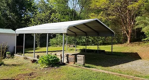 Perfect investor property or lake getaway; 1.15 acre property is wooded and private; Lake Lookout is just past the lower rear property line; Home has brand new interior paint and laminate wood flooring; Kitchen with plenty of cabinets, refrigerator and a stereo with recessed speakers in several rooms; Stick built den or dining room addition; 2 extra unheated stick built utility rooms; Covered front entry; Rear steps and a small deck; Master Bathroom with a stall shower and a jetted tub; Plenty of closet space; Laundry room with included washer and dryer; 2 car carport; Gutters installed in 2017; Home could rent for approximately $700 per month and is ready to go; Close to Bunker Hill High School and River Bend Middle School; Lake access for Lake Lookout is just around the corner; Backyard outbuildings were for chickens at one time; Under the home storage on the left side of the home;