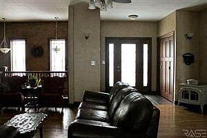 Ranch walkout home on 10 acres offers a unique floor plan and plenty of functionality! White oak floors run throughout the living room, formal dining and kitchen and is offset elegantly with faux texture & paint. Kitchen also boasts center island, granite tile tops, hidden walk-in pantry and gorgeous cabinets. There is also a massive mudroom with main floor laundry off of the garage entrance, a half bath for guests and a master suite with cherry wood floors, huge tile walk-in shower, double sinks and walk in closet. In the lower level is a family room with wood stove, tile floor and walk-out to acres of wide open spaces! There are also 3 bedrooms with walk in closets and another full bath with double sinks. The entire lower level is plumbed for in-floor heat. Upgrades include: Andersen windows, solid wood interior doors throughout, high efficiency furnace.