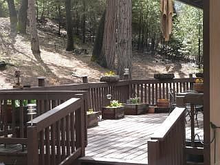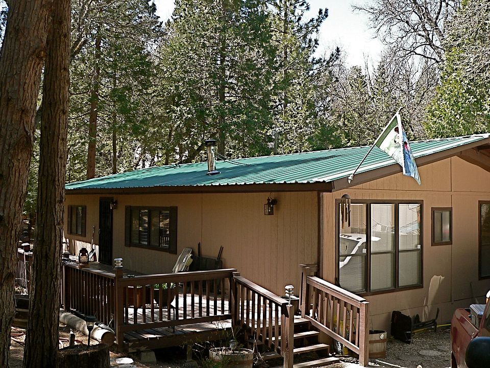 This cabin has a metal roof and recently remodeled bathrooms. Very clean split wing with a large kitchen and breakfast bar. Two large decks and fire pit for all night chats and Bar-b-cues. Nestled in a private setting, tall pines and seasonal creek. Only 1 hour from Bakersfield