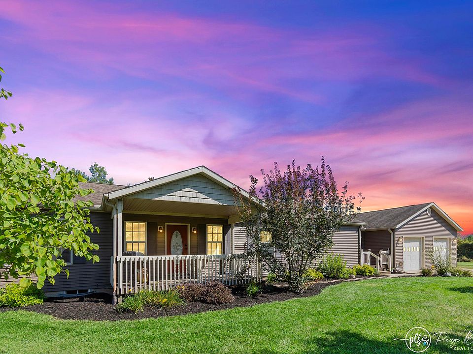 Rustic charm meets elegance in this beautiful ranch home. Enjoy your own private retreat on over 3 1/2 acres of land. Upon entrance you are greeted by a large open living area with a corner fireplace from the floor to the ceiling. Enjoy the primary bedroom with a large ensuite bathroom and walk-in closet. The bathroom boasts double sinks as well as a separate vanity. The oversize custom shower has an impressive slate tile with updated fixtures on the wall and overhead. There's plenty of room to start your day off right!
