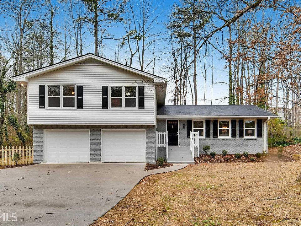 Professionally renovated 4 bedroom 2.5 bath home in a great neighborhood that is move in ready. Kitchen features Shaker white cabinets, Granite counter tops, new stainless appliances and hardwood floors. All bathrooms have been fully remodeled with modern fixtures, new tile on wall and floors and new cabinets. New light fixtures throughout the house including can lights in the kitchen. Master bedroom has his and hers closets. Oversized secondary bedrooms provide plenty of room for the family. New carpet in bedroom area and hardwood on main. Freshly painted interior and exterior! Energy efficient double pain windows, new hot water heater, new 25 year roof and new garage doors. This house is nestled in a private wooded setting on a flat lot located at the top of the subdivision. It is a must for anyone wanting a fresh rehabbed house. Students attend award winning Pope HS, Hightower MS, and Tritt Elem. (Blue Ribbon Awarded School) Just 3.7 miles to historic Roswell yet in the Cobb County school district. 1/2 mile from Kroger/Publix, Walmart and the YMCA.