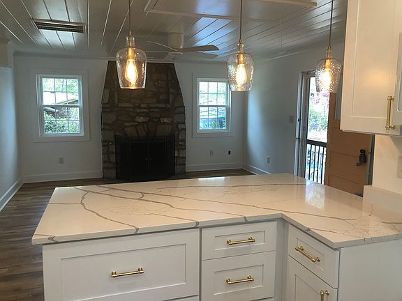 House is across the street from the lake in the small city of Pine Lake GA, about 12 miles east of downtown Atlanta. A complete interior renovation in 2023 includes all new drywall, LVP flooring, insulation, electrical and plumbing and completely new kitchen and bathroom. New appliances include refrigerator, dishwasher, disposal, microwave, washer and dryer. A new roof and exterior doors are being installed this month. The great room has a large stone fireplace with heat producing gas logs. There is an additional office/ dining room. Large landscaped yard has a storage building and plenty of garden space. The house is appropriate for a single person, couple or two roommates. Pine Lake is a unique community that celebrates nature with its accessible lake, beach, park, wetlands and walking trails. Lease is for one year with additional years negotiable. Renter is responsible for utilities (electricity and water) and reasonable yard upkeep. House is all electric except for optional gas for fireplace. No smoking in the house.
