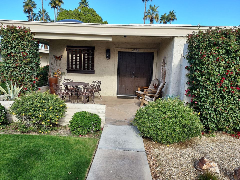 Located in the heart of South Palm Desert this beautifully remodeled condo (2018) is walking distance to El Paseo Shopping and Restaurants as well as the Cross hiking trial. The back slider opens to a beautiful back patio that overlooks the pool and mountains. The warm interior has solid Alder wood doors, Pergo flooring and wool berber carpeting. There is also a quaint front covered patio to enjoy the morning sun and a cup of coffee or tea. Plenty of storage available as a storage garage is close to your unit. This gem will go quickly!