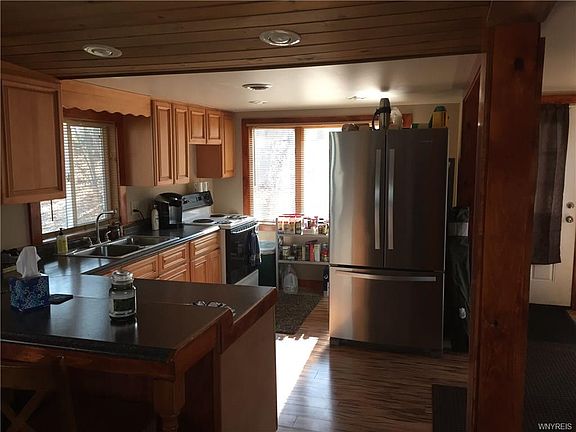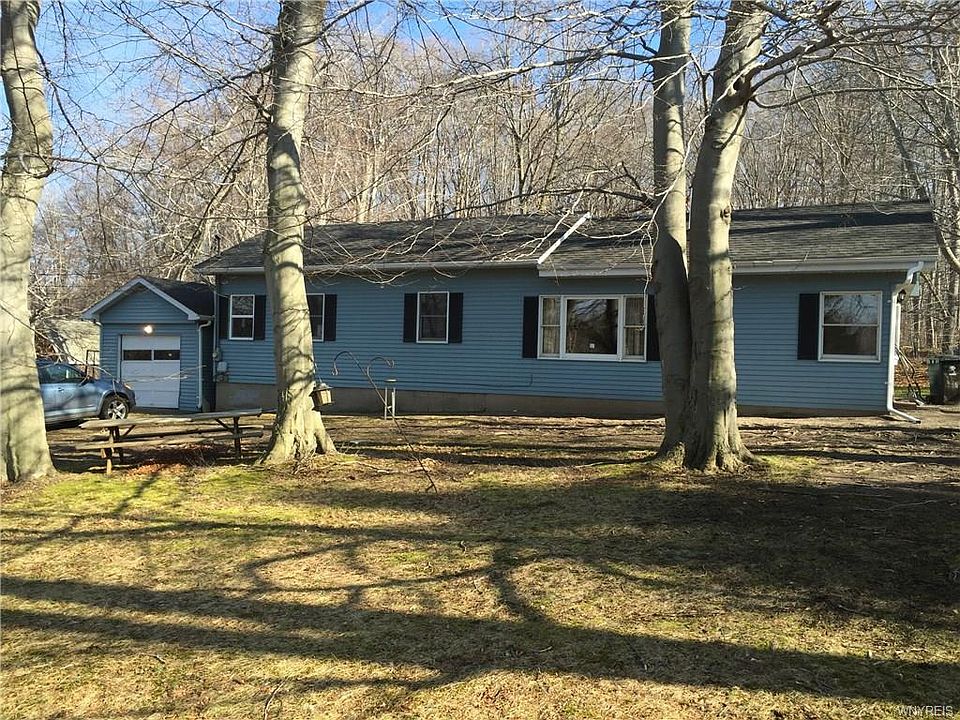 Remodeled ranch with newer arch roof, siding and windows, kitchen and bath. Beautiful woodel lot and back yard w deck. New 2016 carpet, laminate, paint. Wood burning stove not been used.