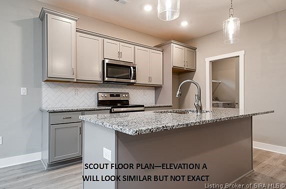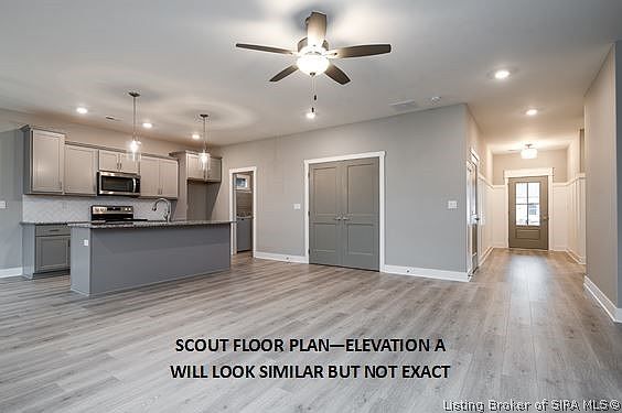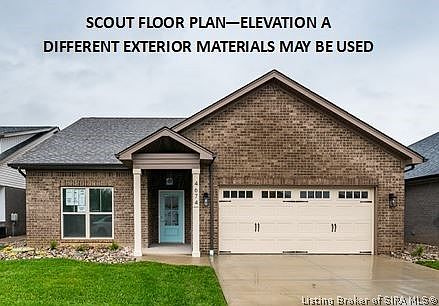 Lot 144 SCOUT FLOOR PLAN ELEVATION A on a SLAB with a THREE CAR GARAGE. This split bedroom floor plan features a COVERED PATIO and COVERED FRONT PORCH. This floor plan is open and spacious! These homes are all brick with occasional vinyl accents for Craftsman styling. Tile shower in master bath. Granite countertops in kitchen & bathrooms. Tile backsplash in the kitchen. Bullnose corners & smooth ceilings. The Builder offers $500 closing costs and $1,500 appliance allowance for range/oven, microwave & dishwasher. 2/10 Home Warranty provided by the Builder. The Builder provides a radon test & mitigation when necessary. ENERGY SMART! Red Tail Ridge Subdivision is 0.25 miles from River Ridge Commerce Center and very close to the Lewis & Clark (East End) Bridge. These builders also build in Whispering Oaks II approximately 0.5 miles from Red Tail Ridge. The residents benefit from Jeffersonville schools & utilities. Agent & seller are related. Projected completion is October 2022.