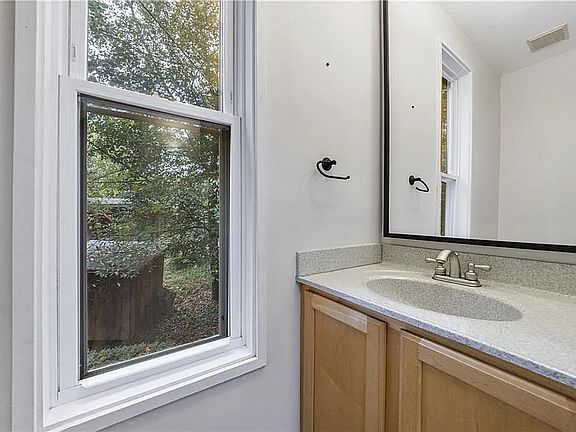 Inspired Lakefront Home + Idyllic Community Turn into this leafy, artsy village, and be transported to a gentler time. Real neighbors wave and smile, in a real community. Shimmering lake views from every room. Drift off to sleep to a chorus of frogs, owls, and a gurgling stream, wake to songbirds and reflected sunlight. Hard to believe you're right here, only 7 miles from Emory! This super-cool, roomy house (2150 square feet, plus garage and carport) is modern, bright, and in excellent condition, with lots of custom built-ins. Bamboo and scored concrete floors, ceramic, slate, and glass-block showers, custom kitchen, and furnace-rated vented fireplace in living room. Designed in consultation with South Face Energy Institute, and based on architect Sarah Susanka's design principles that save 30% of what is typically unused, wasted square footage and invests the savings into highest-quality materials, extreme energy efficiencies, and visual beauty, your next home has 3 bedrooms, 2 1/2 baths, plus separate office, living, kitchen, dining, reading nook, screened porch, and more. Your comfy, vaulted-ceiling master suite has a private balcony with tree-level lake views. Soak in your Japanese soaking tub, or shower in the spacious separate shower. The water closet and double sink vanity are separated by art glass sliding doors. Your built-in office space is just outside the bedroom door, also with tree-level views, for inspired work days. Enjoy your morning coffee from your curvy-roofed screened porch, while watching birds and waving to neighbors on their lakeside walks. With its south-facing orientation, and careful window calculations, the passive solar heat and cooling advantages save many dollars on utilities, while increasing daily comfort. It's a terrific home to share, with a downstairs guest room, guest bath, third bedroom/office, storage, and also a deck off the guest room. Words and photos are barely sufficient to capture the serenity, beauty, and livability of this home, which also was built to extreme green-building standards, so your utilities stay low, and you can feel good knowing you are doing your part to conserve. Abundant parks, swimming beach, walking trails, live music and arts events, monthly pancake breakfast, all while being conveniently located just minutes from major highways, MARTA, Atlanta, Decatur, CDC, Emory, and more. Is it your next nest? Available immediately. By application. No smoking (this has always been a no smoking home), additional residents must be included on the lease, All city ordinances must be followed. If you don't enjoy order, beauty, nature, and neighborliness, this will not be your best fit for a home.