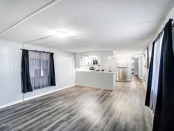 Welcome home to this charming updated 1983 mobile home. This home offers 924 sq ft of comfortable living space featuring 2 bedrooms and 2 full bathrooms. A 28X7 bonus room can be used for additional storage, a mudroom or finished to be use as additional living space. The modern look throughout the home features fresh paint, laminate flooring, a double sink in the master bathroom, new cabinetry hardware and stylish lighting. The exterior of this home has vinyl siding and a beautifully built deck where you can sit and enjoy the open fields and the stunning views of the countryside. Located at the edge of Ada and at the back of the neighborhood, this home doesn't have any backdoor neighbors and provides some privacy. Don't miss out on this cozy home that is the perfect blend of quiet, comfort and charm.