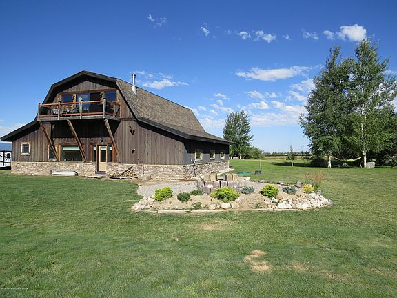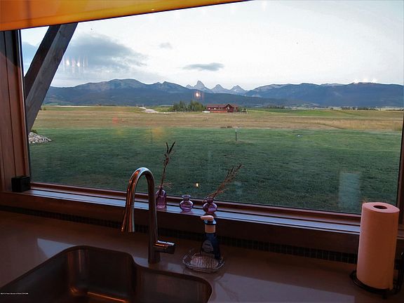 Barn-style home in one of the few paved subdivisions in the Teton view corridor, consisting of a 2BR/2BA home upstairs, and a 1BR/1BA apartment with Murphy bed downstairs, offered turnkey with furnishings, lawn care equipment, snowblower as well as a compliment of household tools. 30' x 26' garage with 10' x 10' doors and 6'' slab accommodate tall/heavy vehicles. Hydronic in-floor heating throughout house and garage provides silent, consistent heat. A 1/2 acre aerated 15' deep pond landscaped with wetland sod, mature trees and grass make for a park like yard. Already under roof and insulated is an additional space of nearly 500 sq ft that can be finished into more living space or leave as is for storage. Septic system can accommodate another home if desired.