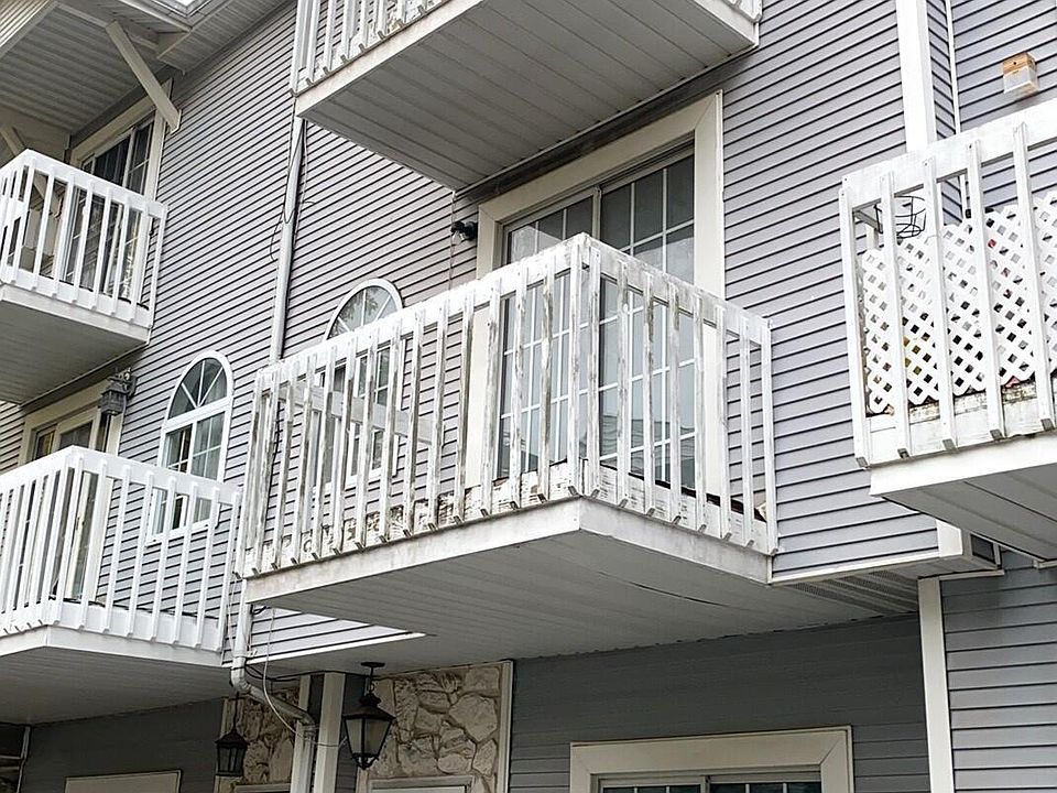 Small patio areaTwo bathroomsTwo balconiesTwo bedroomsEat-in kitchenFamily room