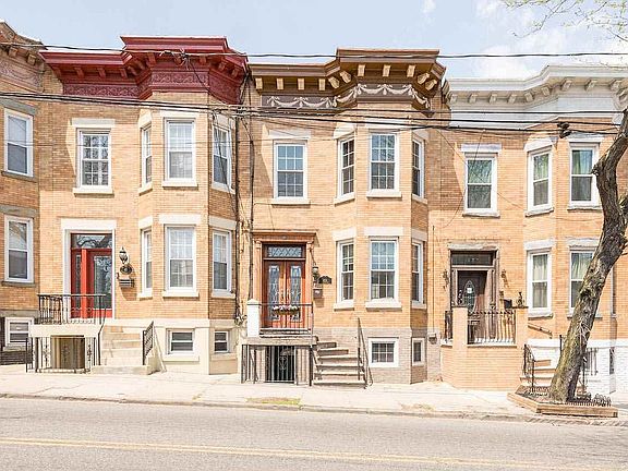 Magnificent single family brick row house in the hottest Jersey City Heights location! Meticulously maintained 3b /2.5b home. Fully finished basement featuring home office/study with exposed beams, gas fireplace, lots of additional storage, full bath and laundry room. Super sunny kitchen/dining room with access to a lovely patio for summer dining. Living room features bay window and period pocket door. 3 bed, luxurious loaded bathroom. Walk to Hoboken, bus to JSQ/NYC block away. Home has never flooded.