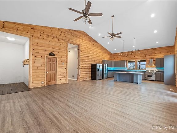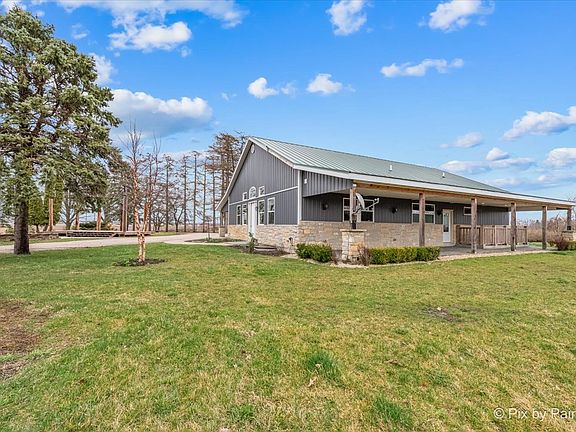 Be amazed by this lovely custom-built haven on a sprawling 5-acre farm. It is more than just a residence; it's a canvas for creativity. The ranch-style home spans over 2,400 square feet and has 15+-foot ceilings, which are truly impressive! The open-concept floor plan features a fabulous gourmet kitchen with beautiful shaker-style cabinets, stone countertops, and stainless steel appliances. The main floor features three bedrooms and two full baths, offering comfortable living space for everyone. The fully finished basement adds even more versatility, with three additional rooms and a full bath, perfect for guests or creating separate living quarters like an in-law arrangement. This setup provides both privacy and flexibility. The detached 6-car garage standing as a testament of functionality, this structure transcends mere storage space, offering a haven for both vehicles and enthusiasts alike. The possibilities are endless with this remarkable 2018 construction on a picturesque 5-acre farm. The land provides boundless opportunities for those with a vision for sustainable living, leisure, and recreation.
