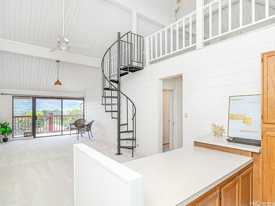 Enjoy extensive interior living space of just under 900 square feet, PLUS loft space which can be your extra bedroom, office, or kids playroom! Only the top floor units come with vaulted ceiling in the living room. Just upgraded with brand-new carpet and paint throughout the unit in April 2023. The expansive covered lanai with stunning Ko'olau mountain views. Comes with 2 parking (tandem). Puu Iki is a pet-friendly community. It is conveniently located near a shopping center and a mall.