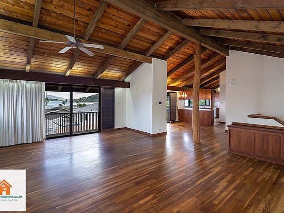 You will love this single-family home located in the coveted Alii Shores Neighborhood. It boasts a beautiful yard, usable flat lawn as well as amazing views of Kaneohe Bay and the ocean. The quiet neighborhood is conveniently located minutes from Windward Mall, Safeway, restaurants, and also has easy access to H3 and the Likelike to get anywhere you need on Oahu. The home has 3 bedrooms, 1 den, and two bathrooms. 1 bedroom and bathroom are located upstairs. The fourth bedroom downstairs can also make for a nice den or work area. All the bedrooms/den have window AC units for your comfort. The upstairs has an open floor plan that flows from the living and dining areas into the kitchen. You will find beautiful hardwood floors in the living and dining rooms as well as ocean views that will impress your guests. Available September 12. Pets negotiable. Tenant must pay utilities including, electricity, gas, sewer/water, cable, and internet. Security deposit is equal to one month's rent. Application Fee: $45. No Smoking in or within 20 feet of the property.